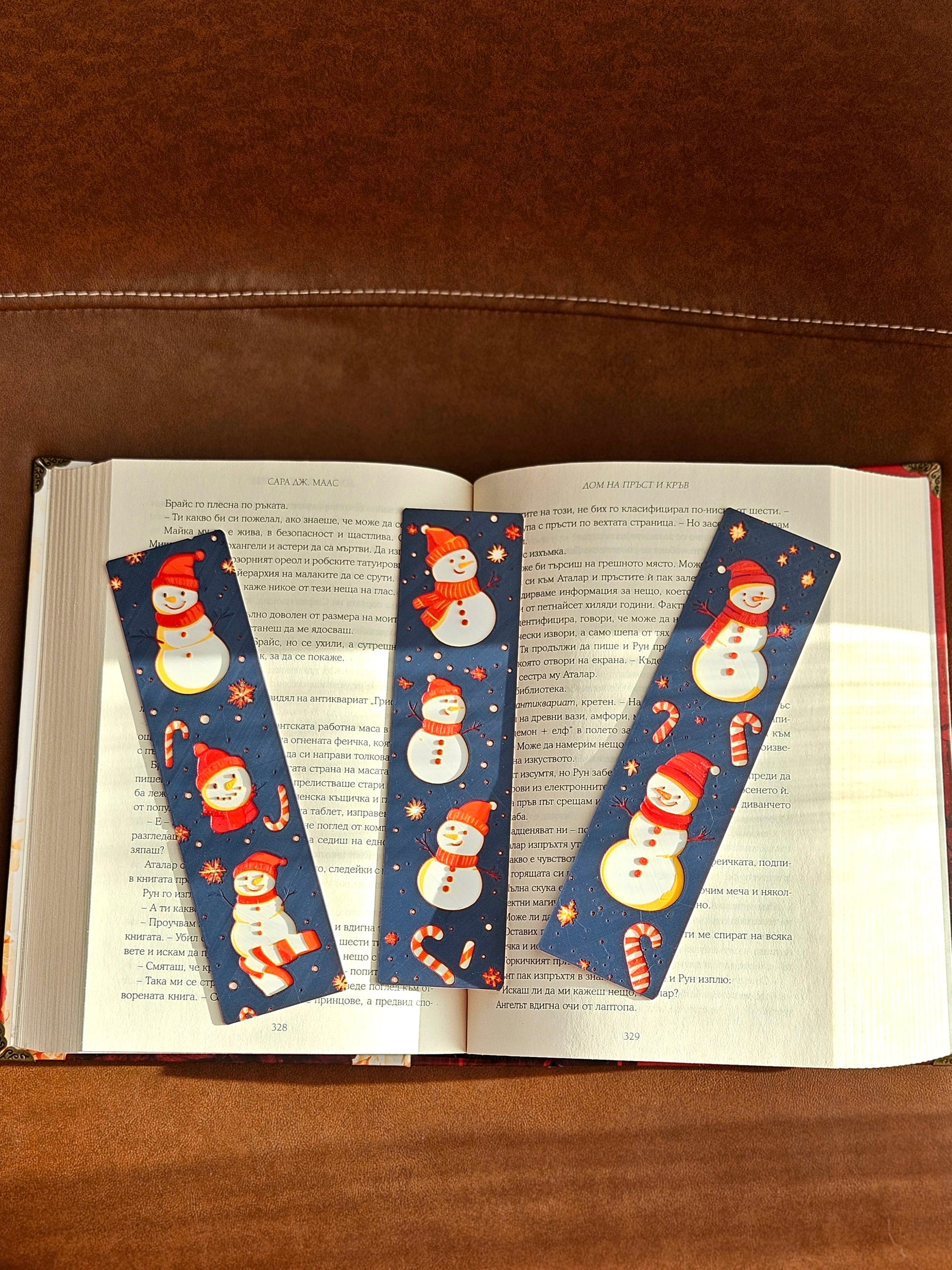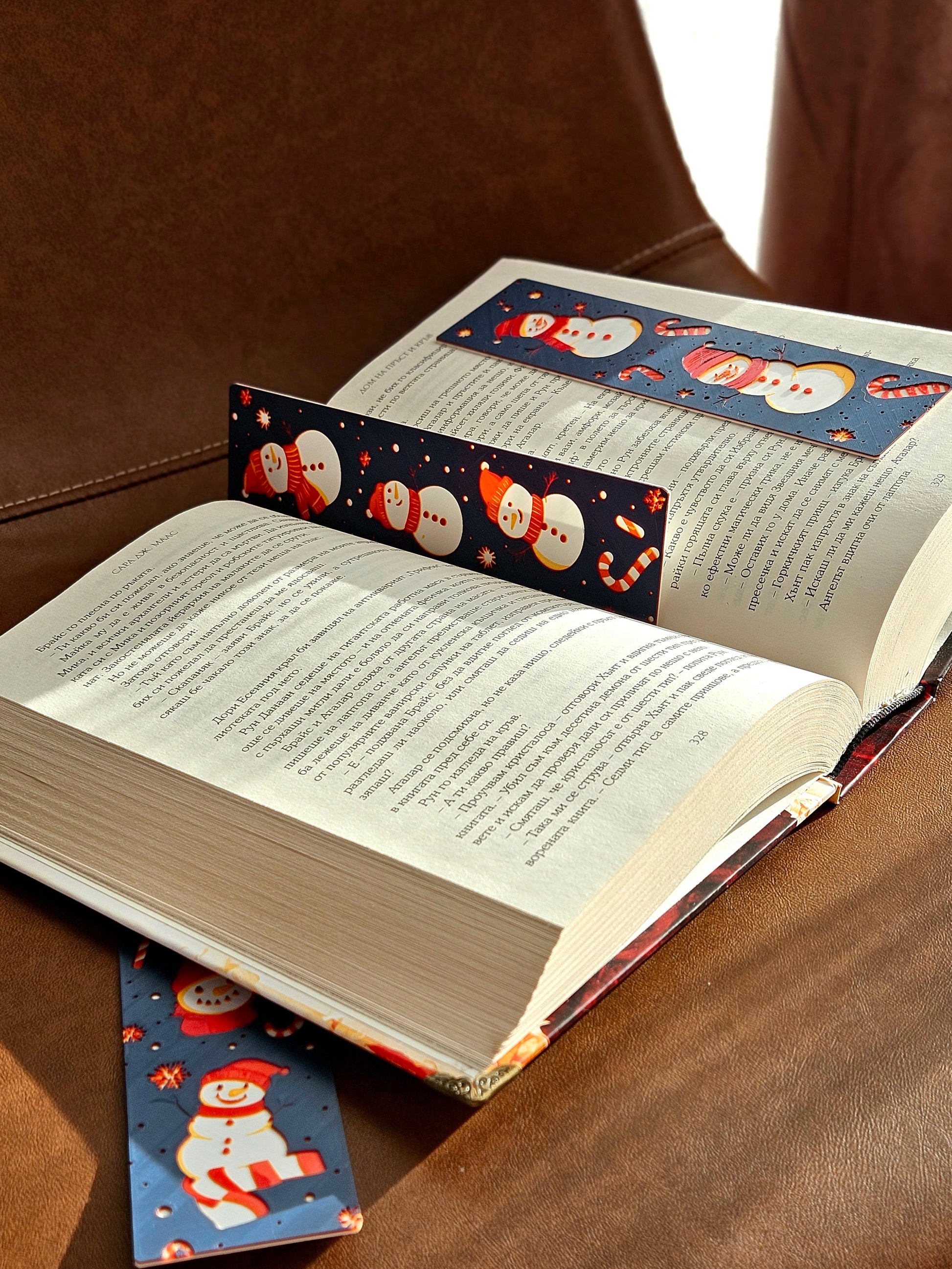 Fiecare semn de carte este decorat cu omuleți de zăpadă simpatici, cu căciuli și fulare călduroase, bastonașe de zahăr și fulgi de nea care cad peste un cer albastru închis, de iarnă adevărată. Culorile vii și expresiile vesele fac din acest set un mic reminder de „cozy vibes” de fiecare dată când deschizi cartea.