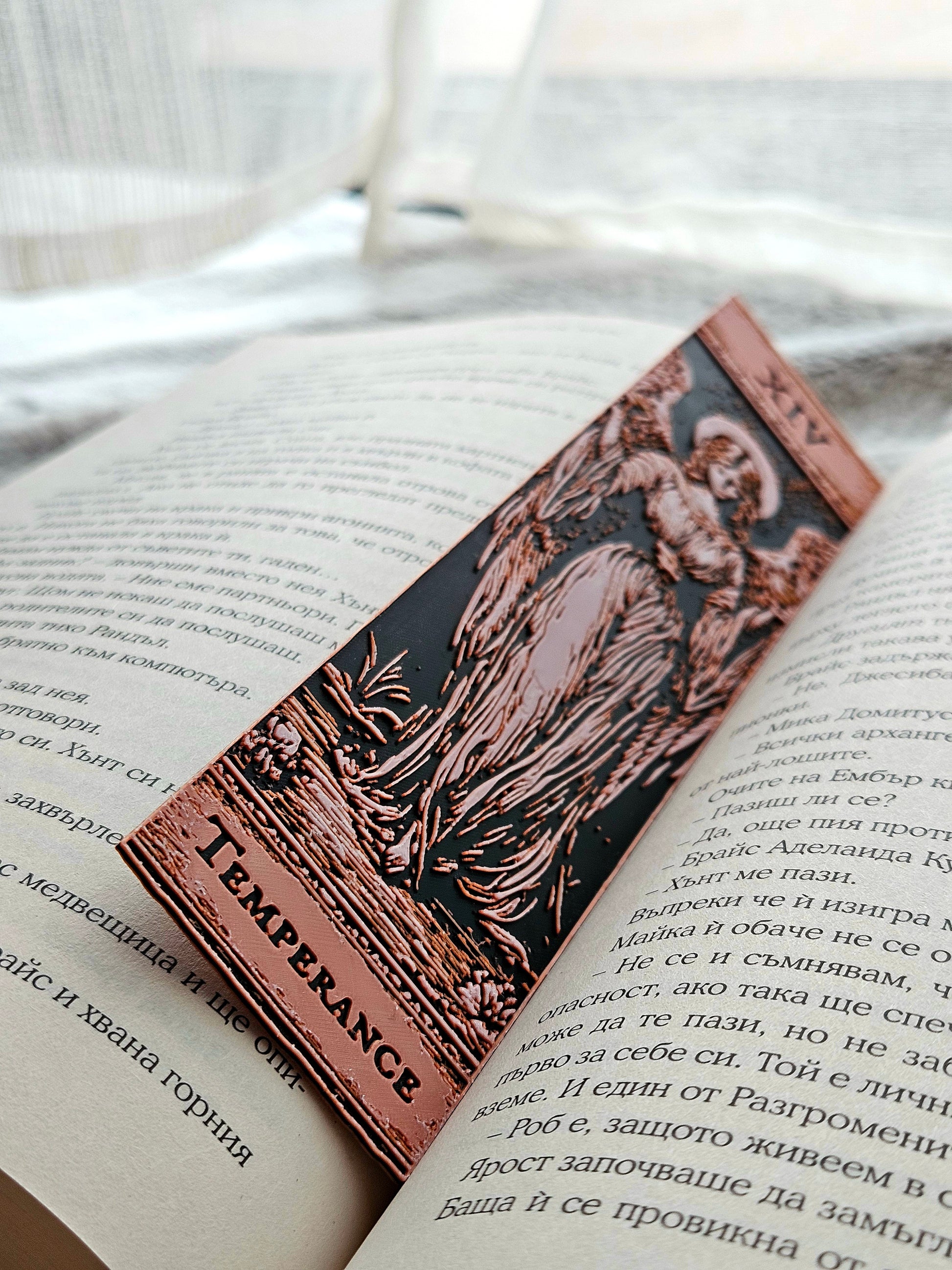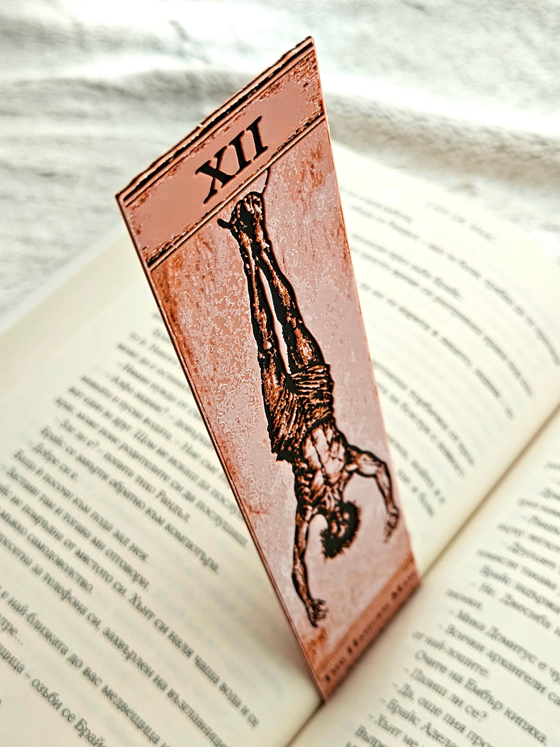 Fiecare semn de carte este realizat ca o mini carte de Tarot: ilustrație în stil vintage, număr roman în partea de sus și numele arcanei în partea de jos, toate scoase în evidență prin relief 3D. Arată excelent atât în paginile unei cărți, cât și expuse împreună ca un mic set de colecție.
